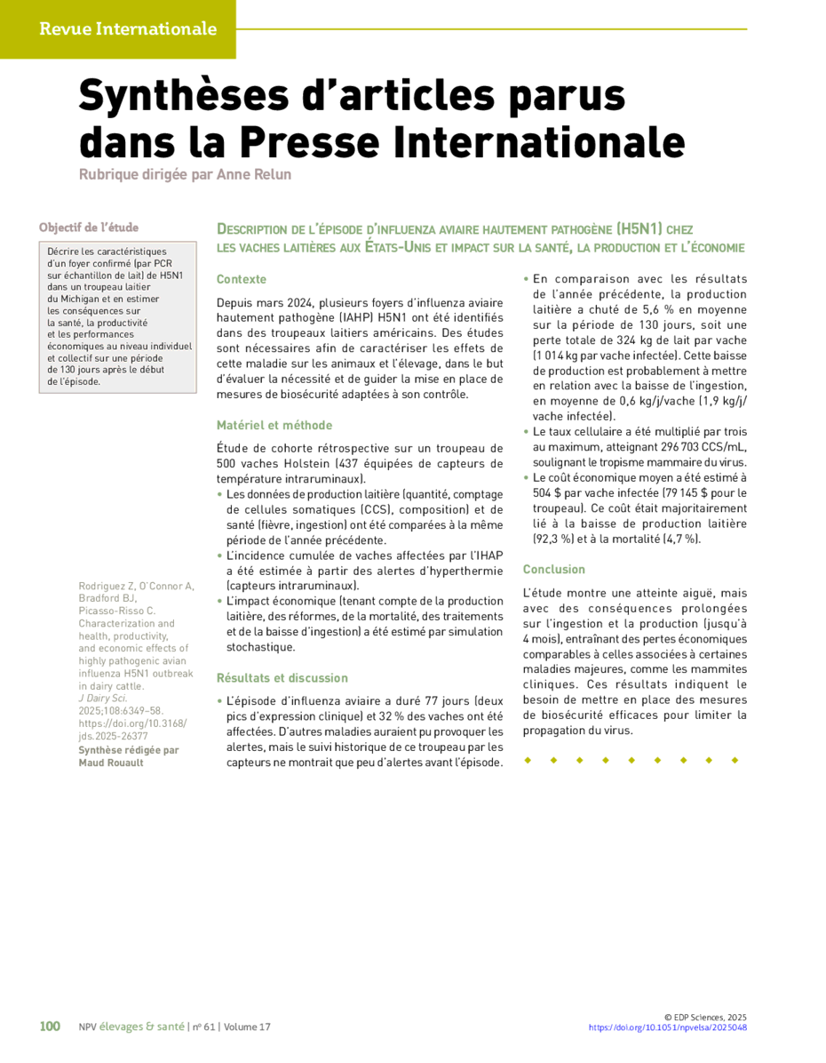 Le Nouveau Praticien Vétérinaire élevages & santé 2025;17(61):100–103