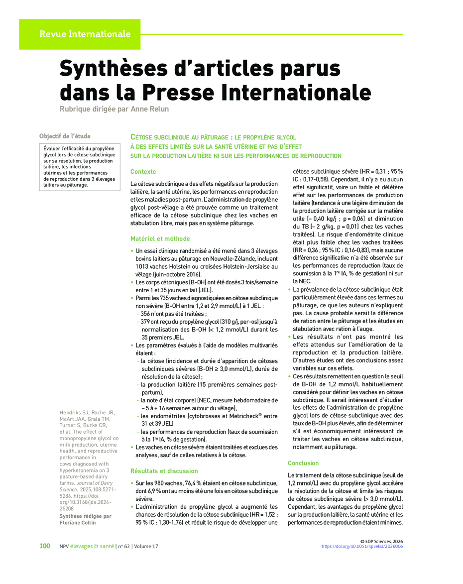 Le Nouveau Praticien Vétérinaire élevages & santé 2025;17(62):100–105